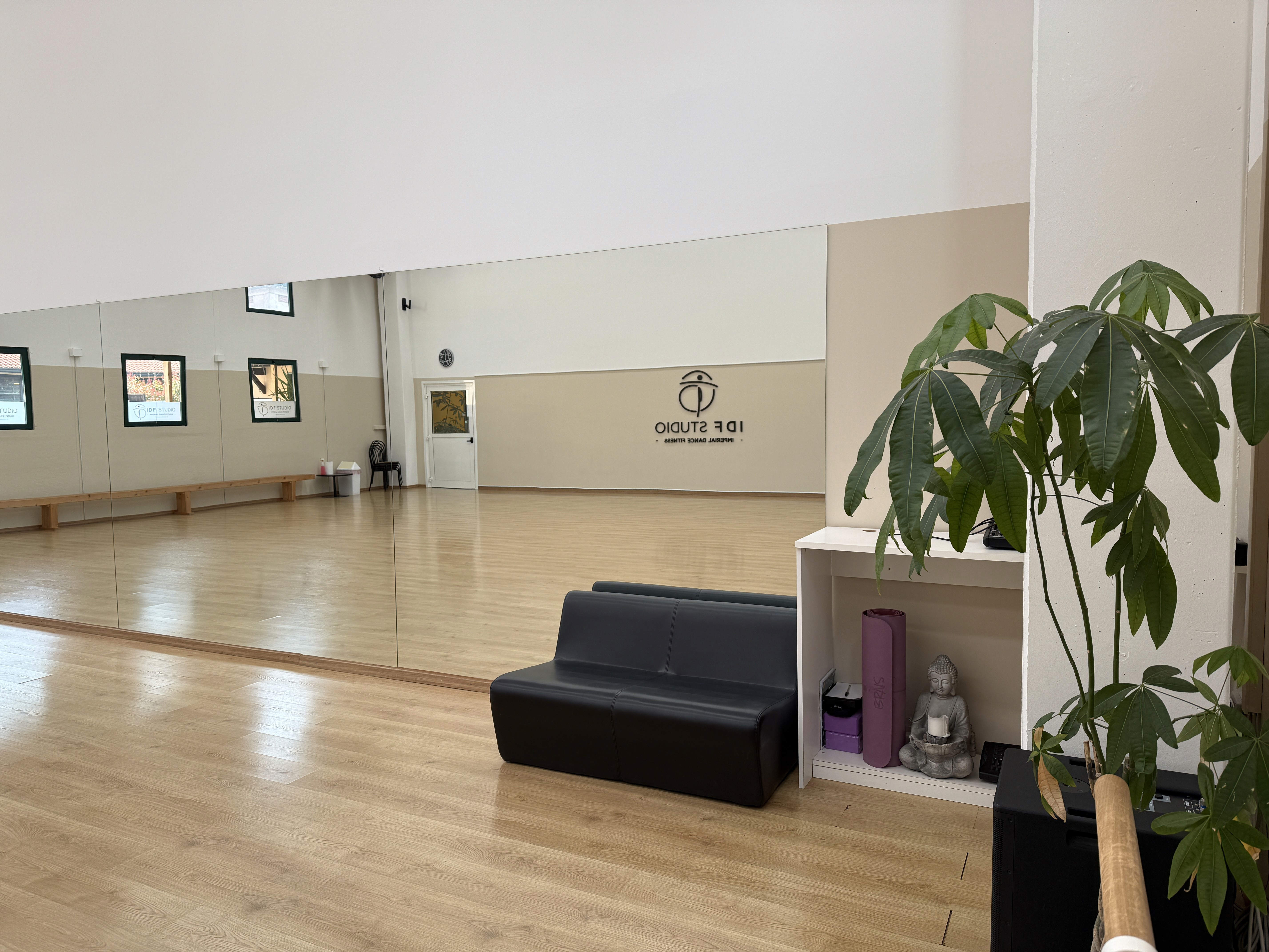 Uno spazio ampio dedicato al lavoro a corpo libero, ideale per sviluppare controllo, stabilità e consapevolezza del movimento in un ambiente dinamico e curato.
