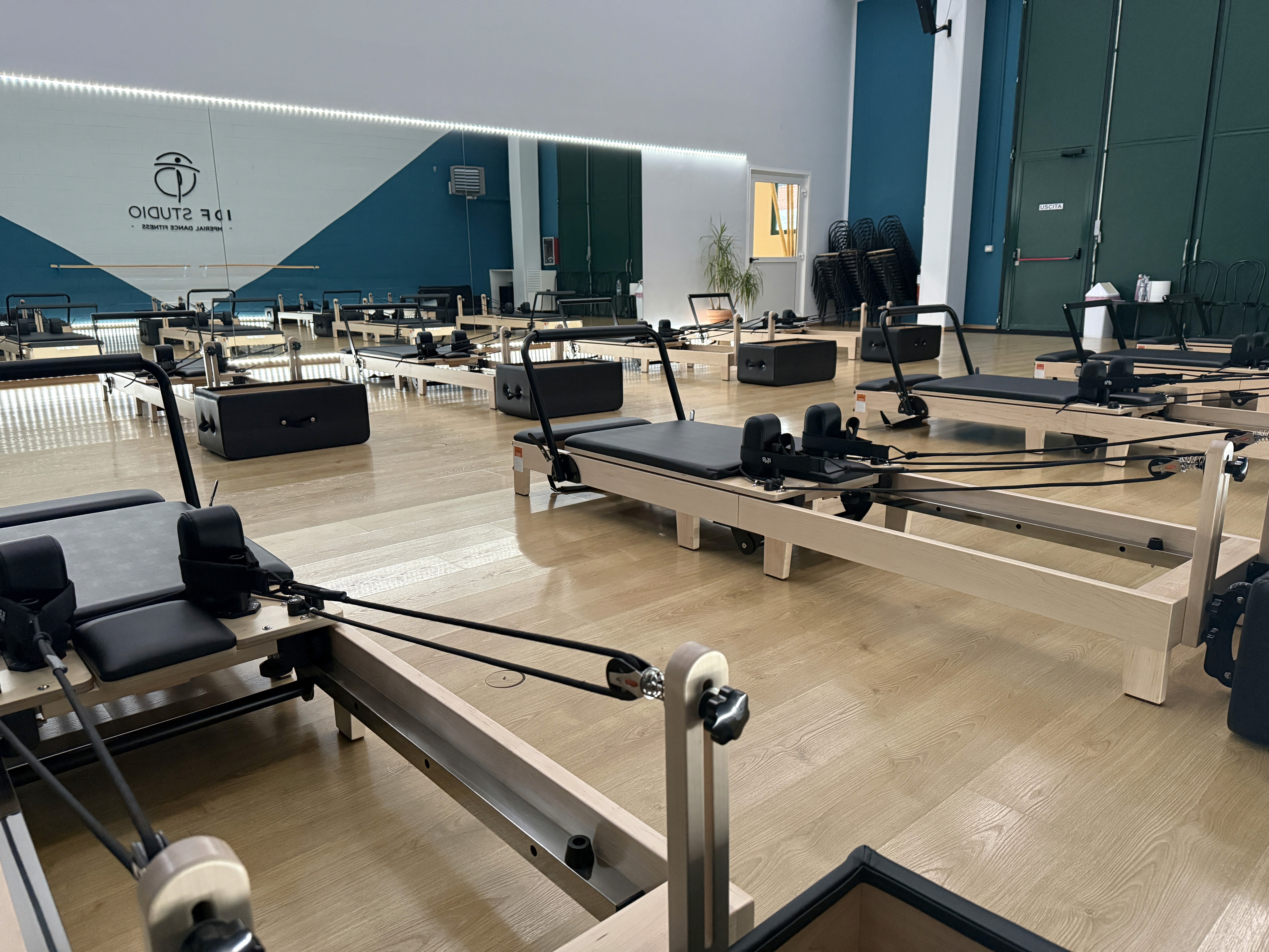 Una sala Reformer ampia e organizzata con 9 Reformer, pensata per lavorare con ordine, precisione e qualità. Uno spazio dinamico che mantiene sempre alta l’attenzione sul metodo.